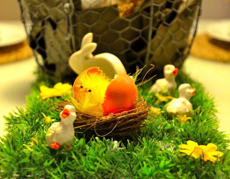 [RO] In curand catolicii vor sarbatori Pastele. Acum ca locuiesc aici,sarbatoresc aceasta sfanta festivitate impreuna cu ei. Nu uit nici de Pastele nostru,insa pana atunci ma pregatesc de Pastele din Italia. Multi sunt in aceeasi situatie ca si mine si sper ca veti celebra si voi. M-am gandit deci sa va dau o idee pentru a decora masa. Nu este nevoie sa cheltui multi bani,e de ajuns putina imaginatie si jocul este facut. Eu am folosit ouale,puisorii si iepurasul din anul trecut. Am cumparat doar acest cos din fier si aceasta iarba artificiala,pentru un total de 6 euro. Uitati-va ce masa draguta am facut :). Va place? In curand voi publica si a 2 idee ;).
