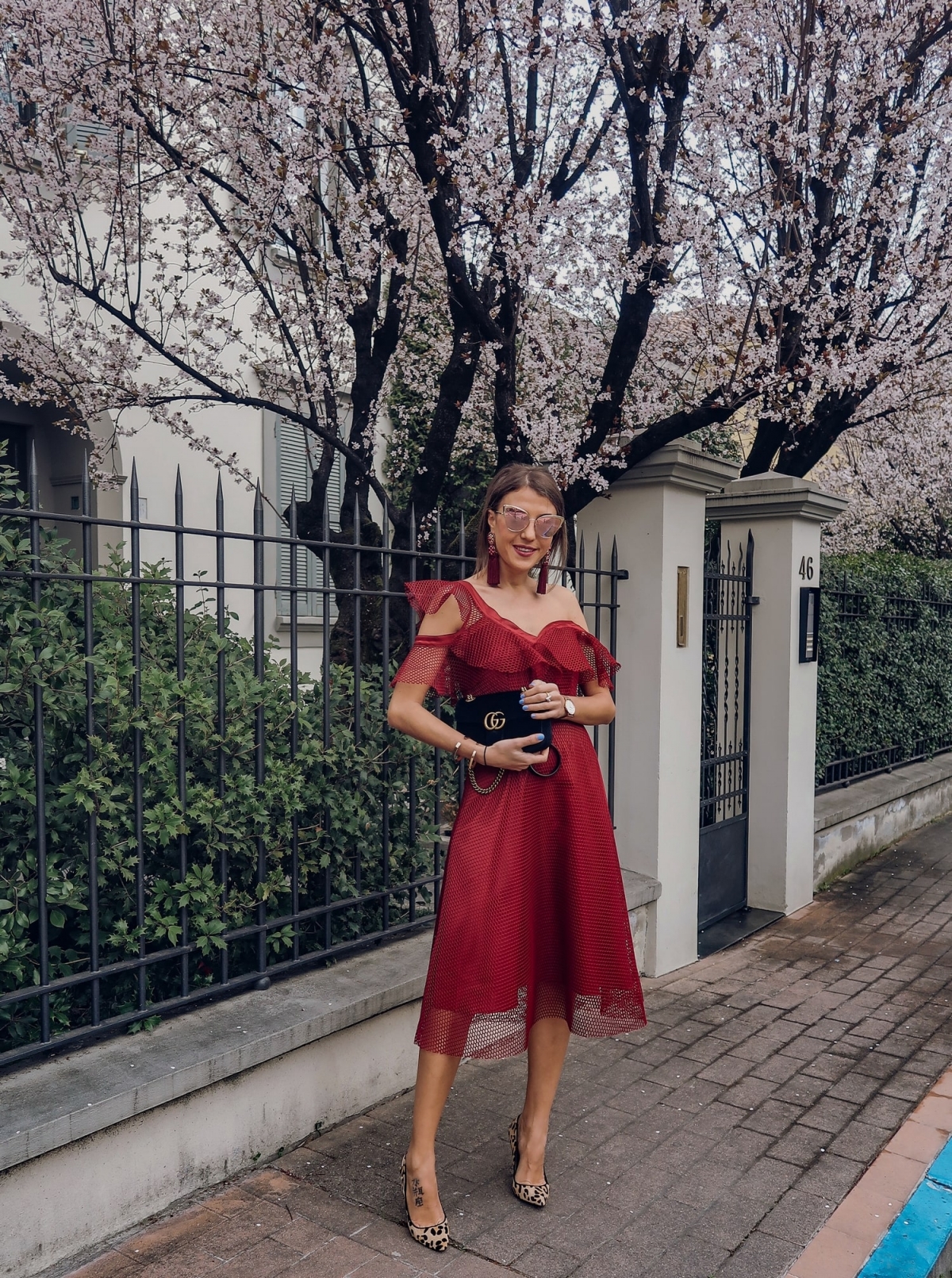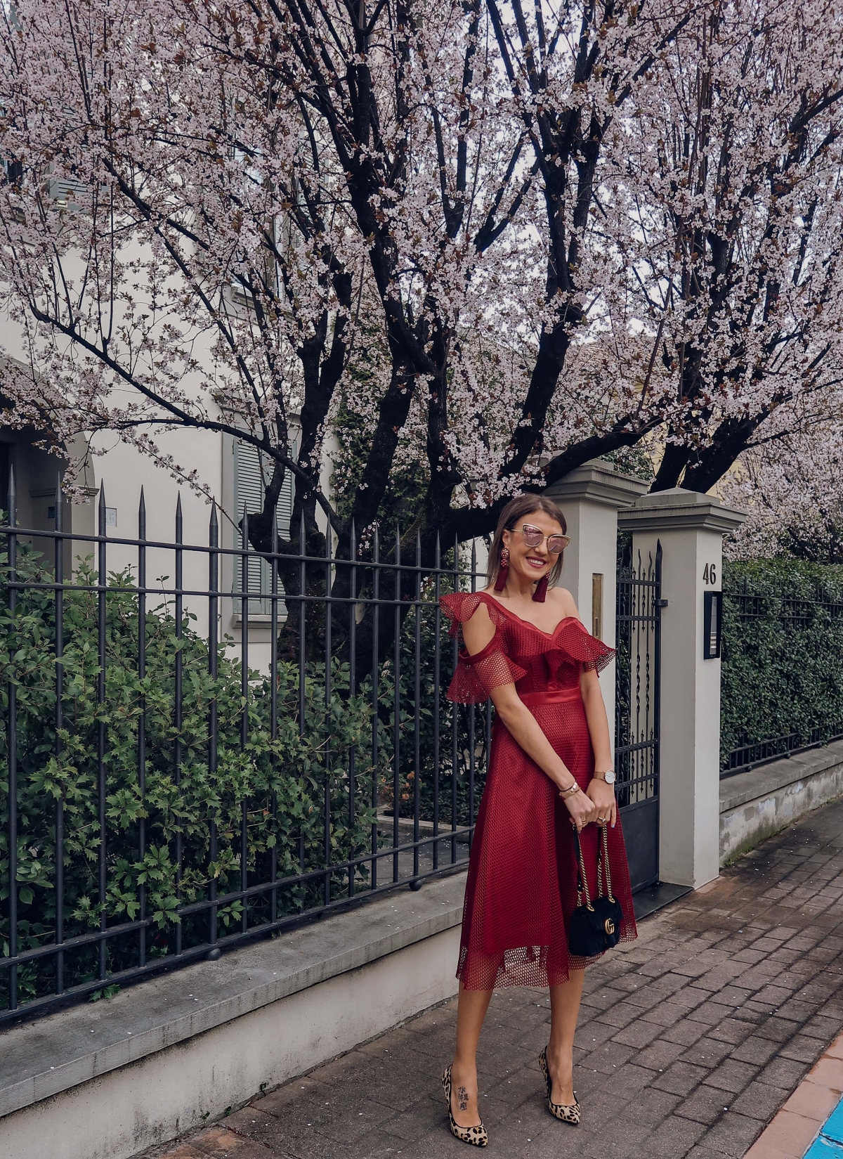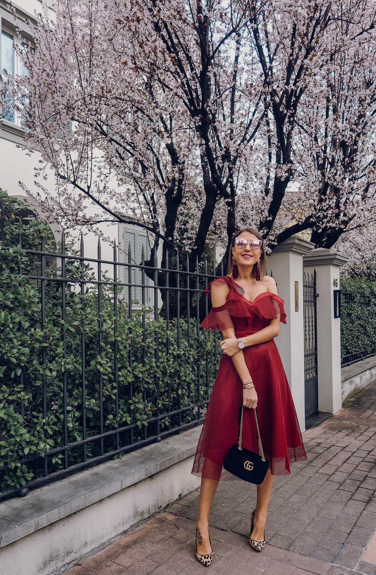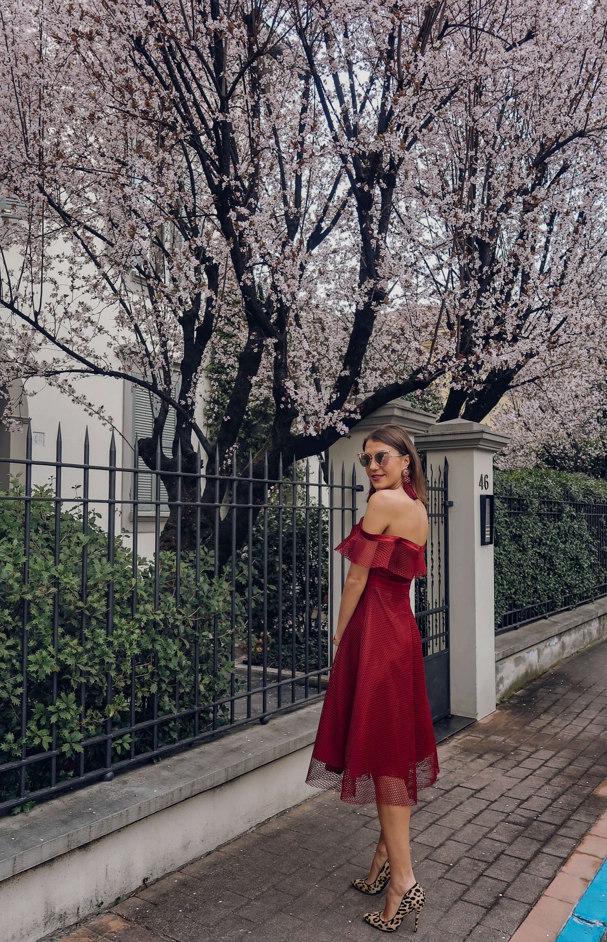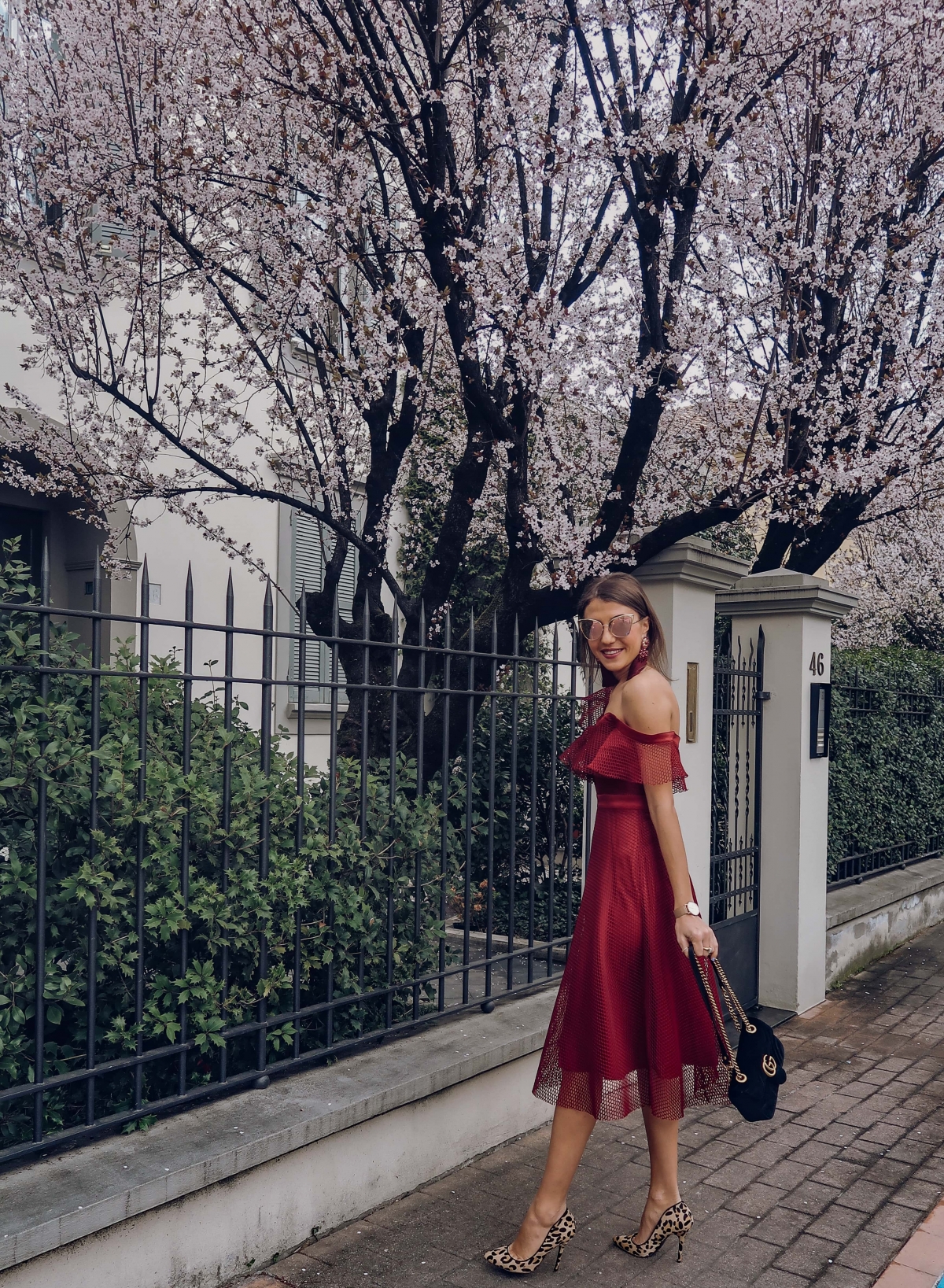 Questo vestito e' stato amore a prima vista. Mi piace molto la sua forma e il colore. Questo burgundy e' molto elegante ed perfetto per un evento di sera. Anche la location e' bellissima. Siamo passati qualche giorno fa di qua, e ho visto tutti questi alberi cosi' belli e fioriti. In quel momento ho deciso che faro' le foto con il vestito qui. Il fotografo stavolta e' stata mia mamma :). Io direi che e' brava molto,poi ha tanta pazienza  con me :)). Bene, vi lascio il link del vestito QUI e vi auguro buon weekend! Ci ''sentiamo'' poi domenica per gli auguri di Buona Pasqua!