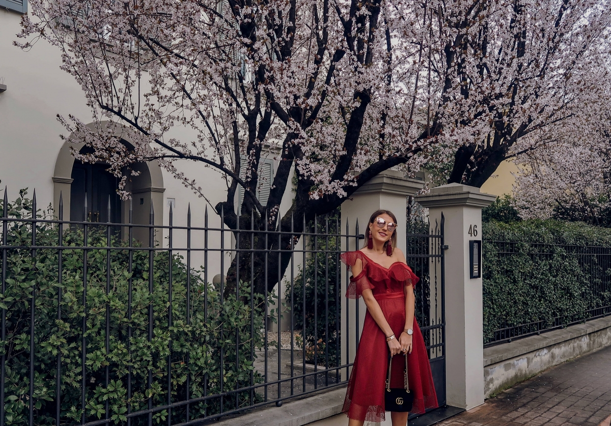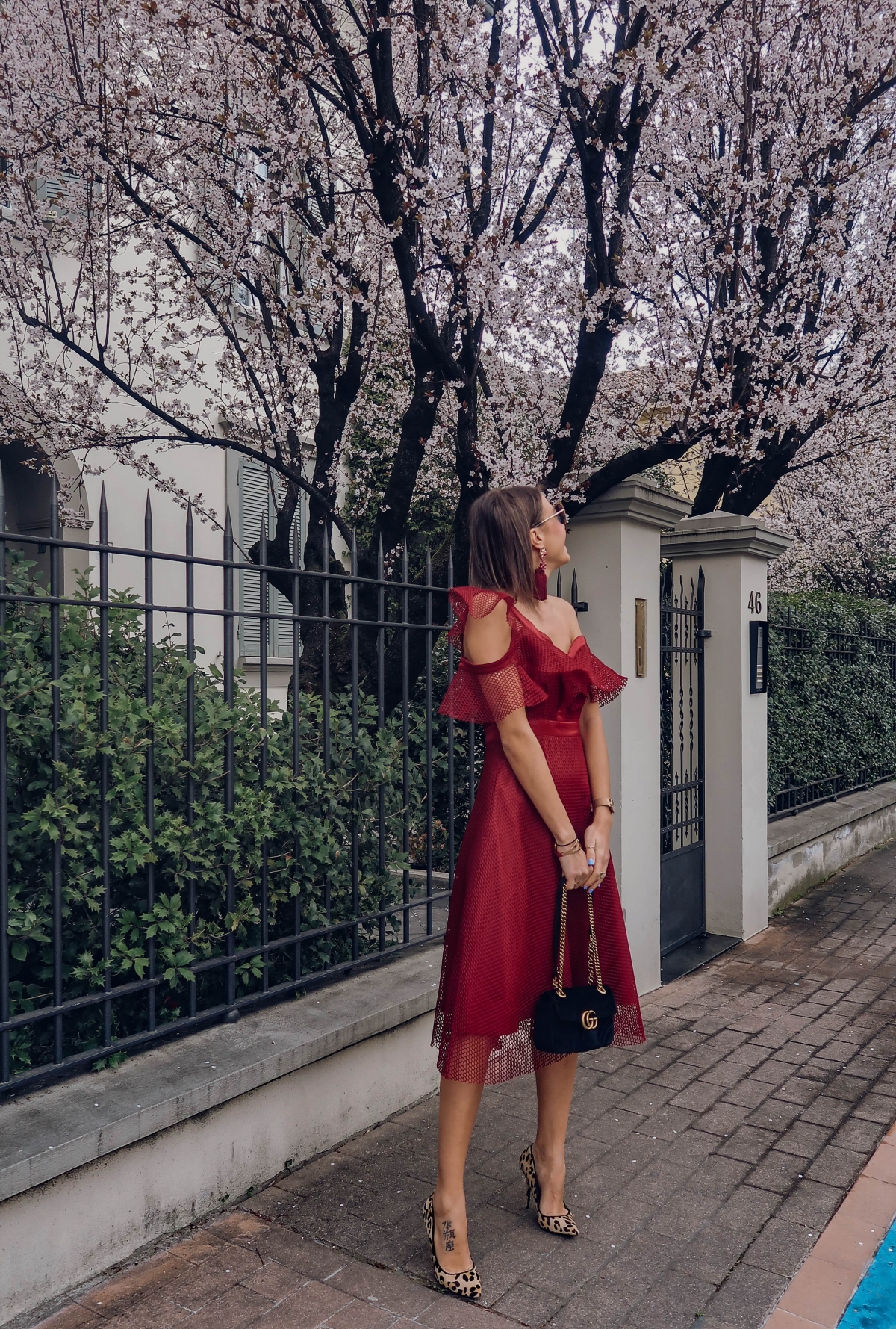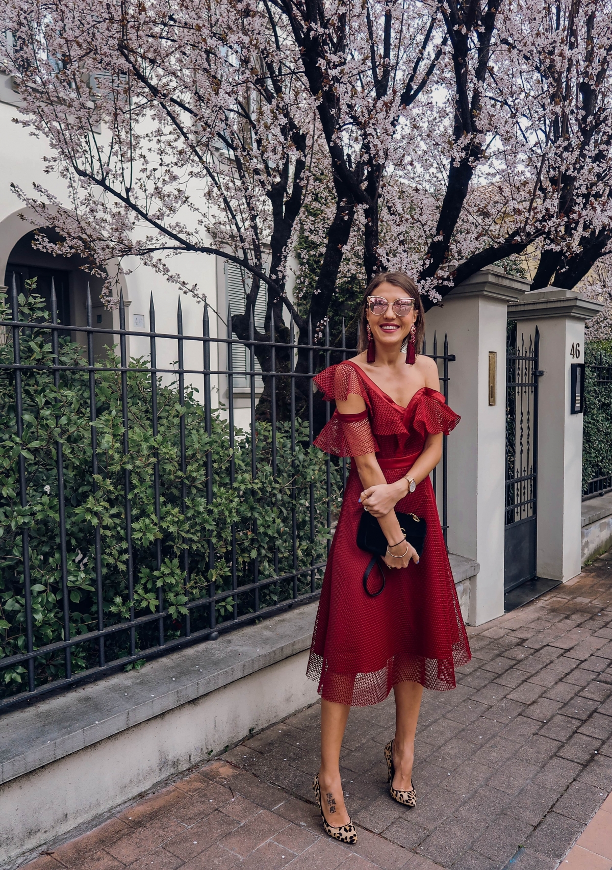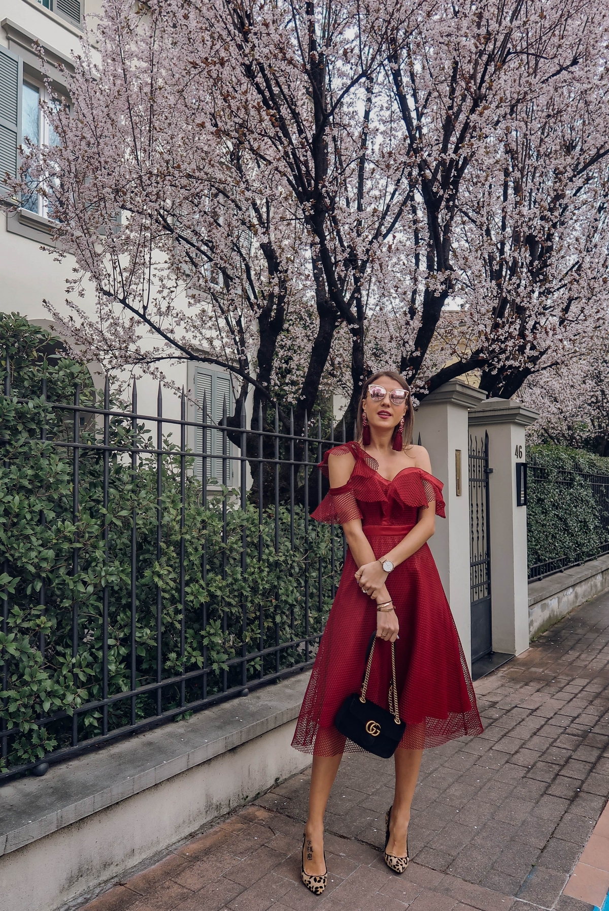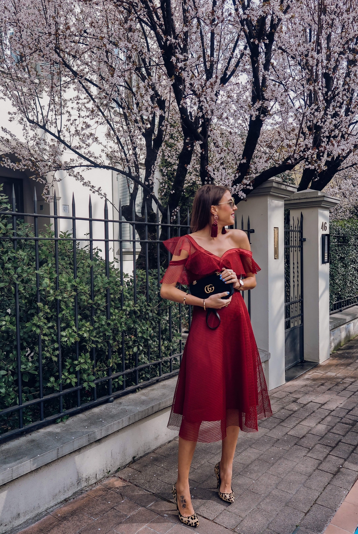 Questo vestito e' stato amore a prima vista. Mi piace molto la sua forma e il colore. Questo burgundy e' molto elegante ed perfetto per un evento di sera. Anche la location e' bellissima. Siamo passati qualche giorno fa di qua, e ho visto tutti questi alberi cosi' belli e fioriti. In quel momento ho deciso che faro' le foto con il vestito qui. Il fotografo stavolta e' stata mia mamma :). Io direi che e' brava molto,poi ha tanta pazienza  con me :)). Bene, vi lascio il link del vestito QUI e vi auguro buon weekend! Ci ''sentiamo'' poi domenica per gli auguri di Buona Pasqua!