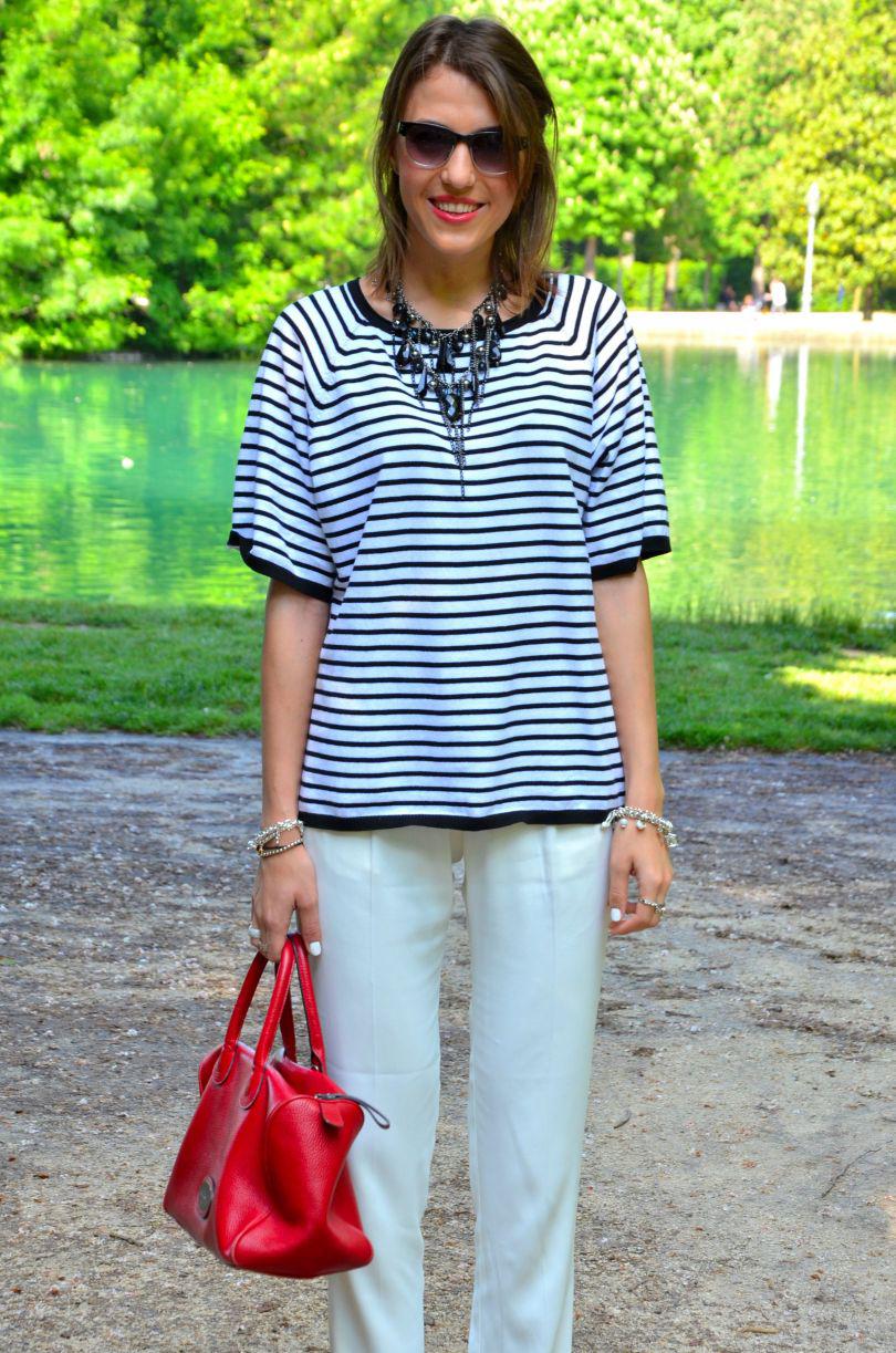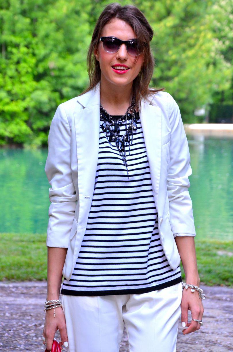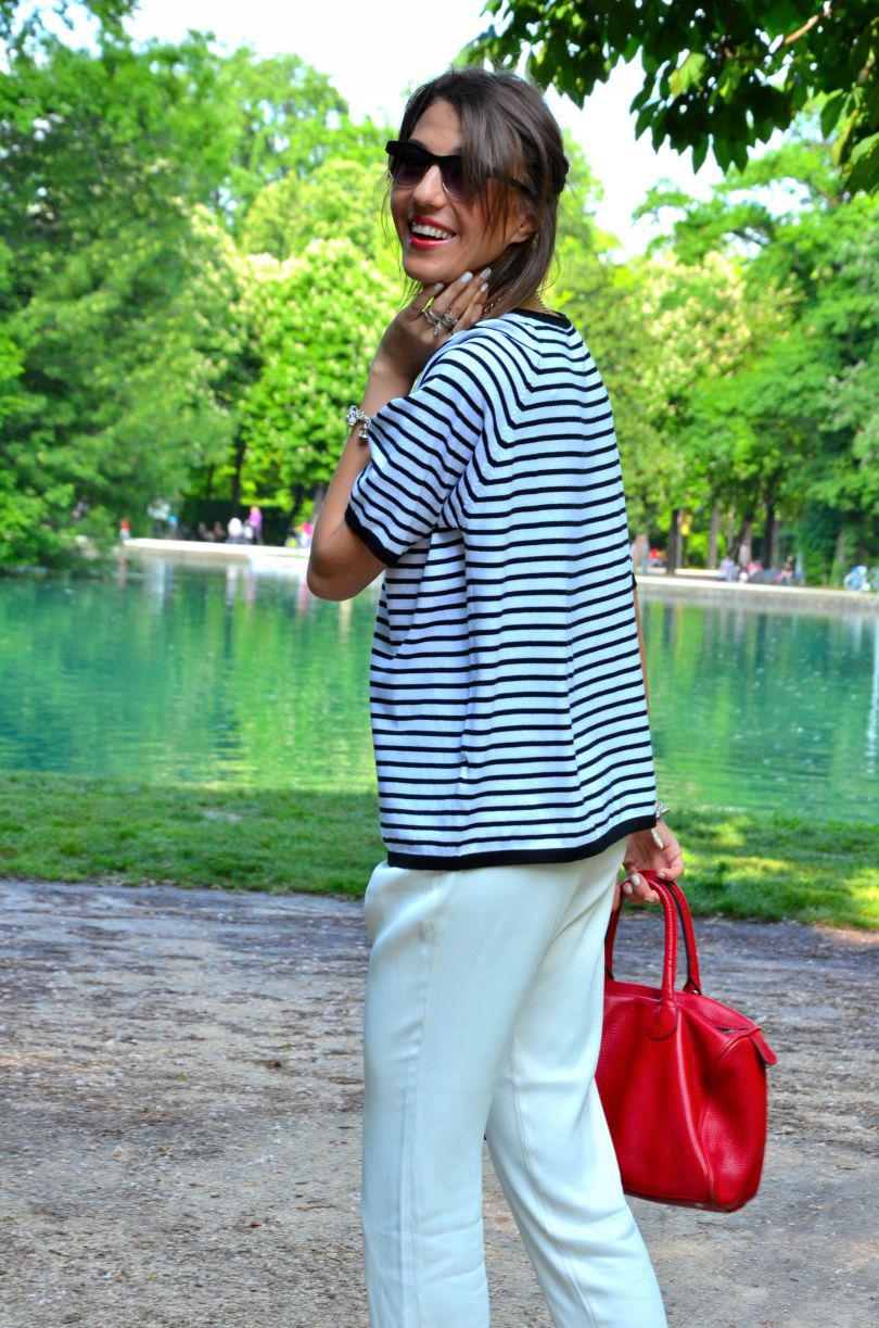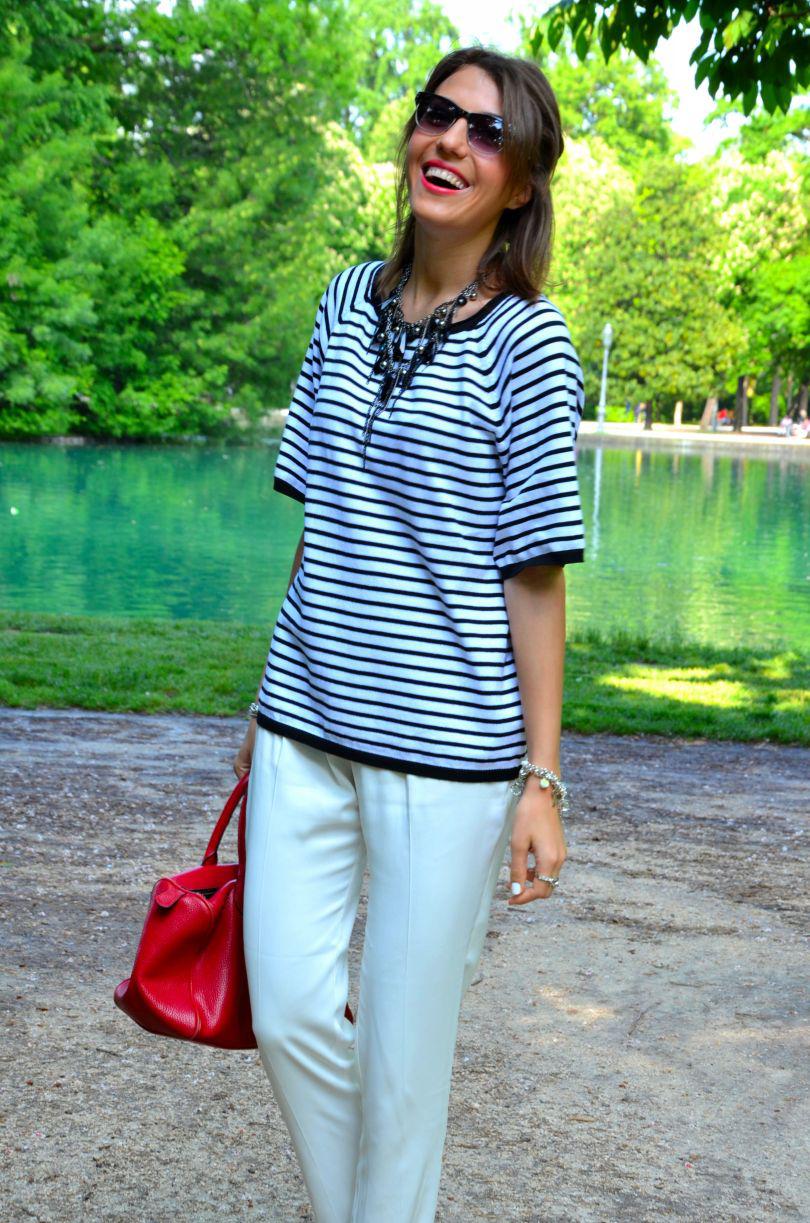 [IT] Ho usato nel post di oggi 3 elementi chiave di questa estate: il colore bianco, le righe e le espadrillas. I pantaloni sono di asos e li adoro. Hanno un tessuto molto leggero,perfetto per le giornate calde. Finalmente c'e' stato un bel sole oggi. Voglio godermelo in pieno,visto che questo weekend piovera' ancora. La maglia e' di ZARA . Se non avete acquistato ancora nessun articolo a righe, allora la prossima volta che andate a fare shopping prendete una cosa in questo print. Attenzione pero' che righe scegliete: orizzontali o verticali. Quelle orizzontali ingradiscono e ingrassano,quelle verticali allungano e dimagriscono molto. Il terzo elemento di quest'estate sono le espadrilles. Aaaaah,io sognavo quelle di Chanel ,pero' al momento mi accontento con quelle prese nel negozio dove lavoro, Subdued . A me piacciono moltissimo,a voi?