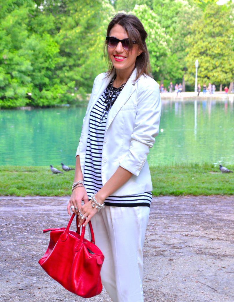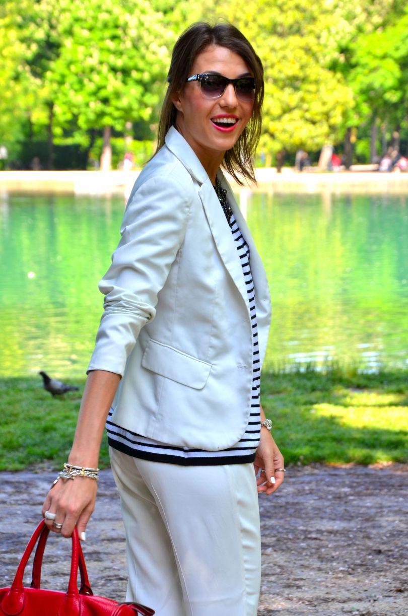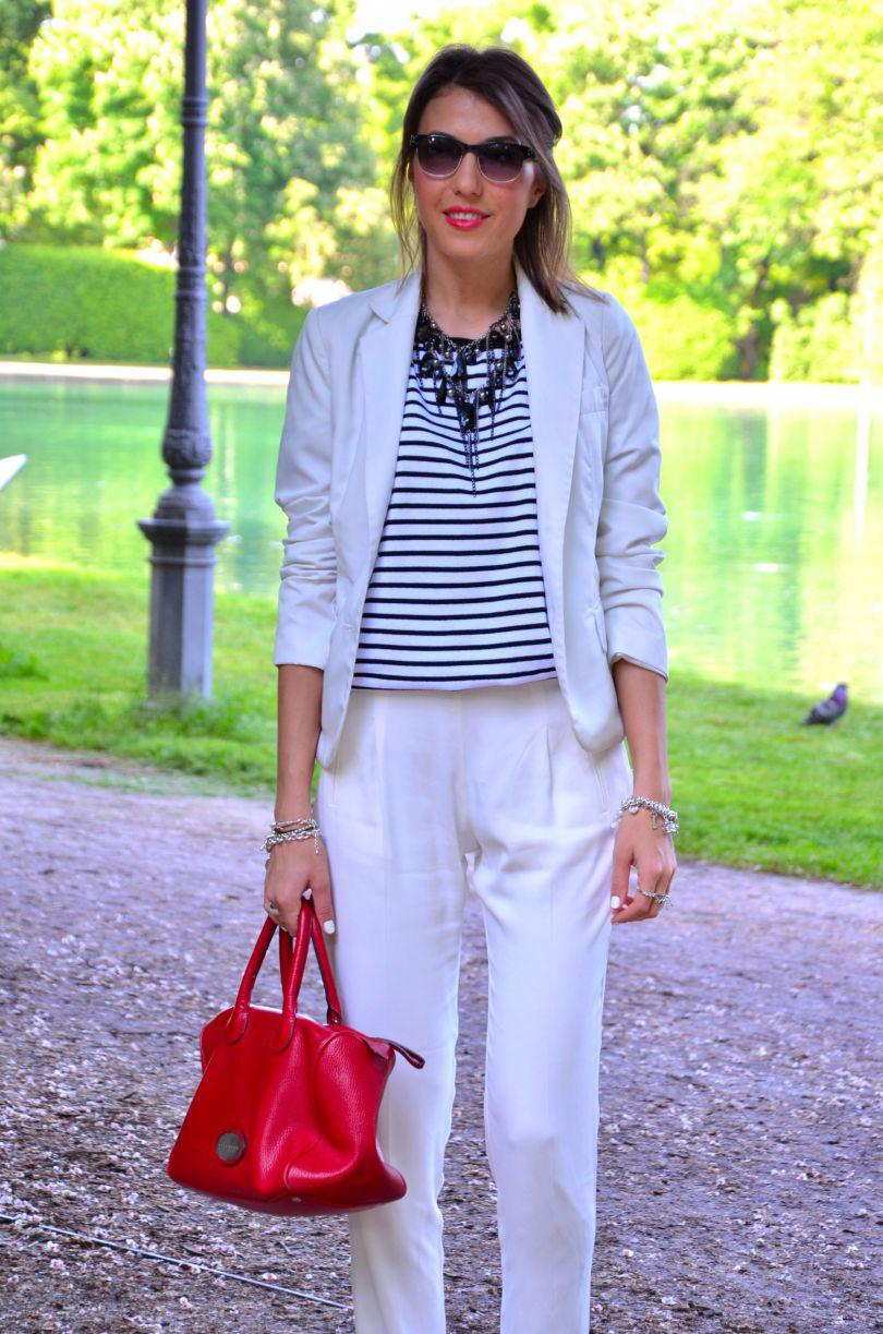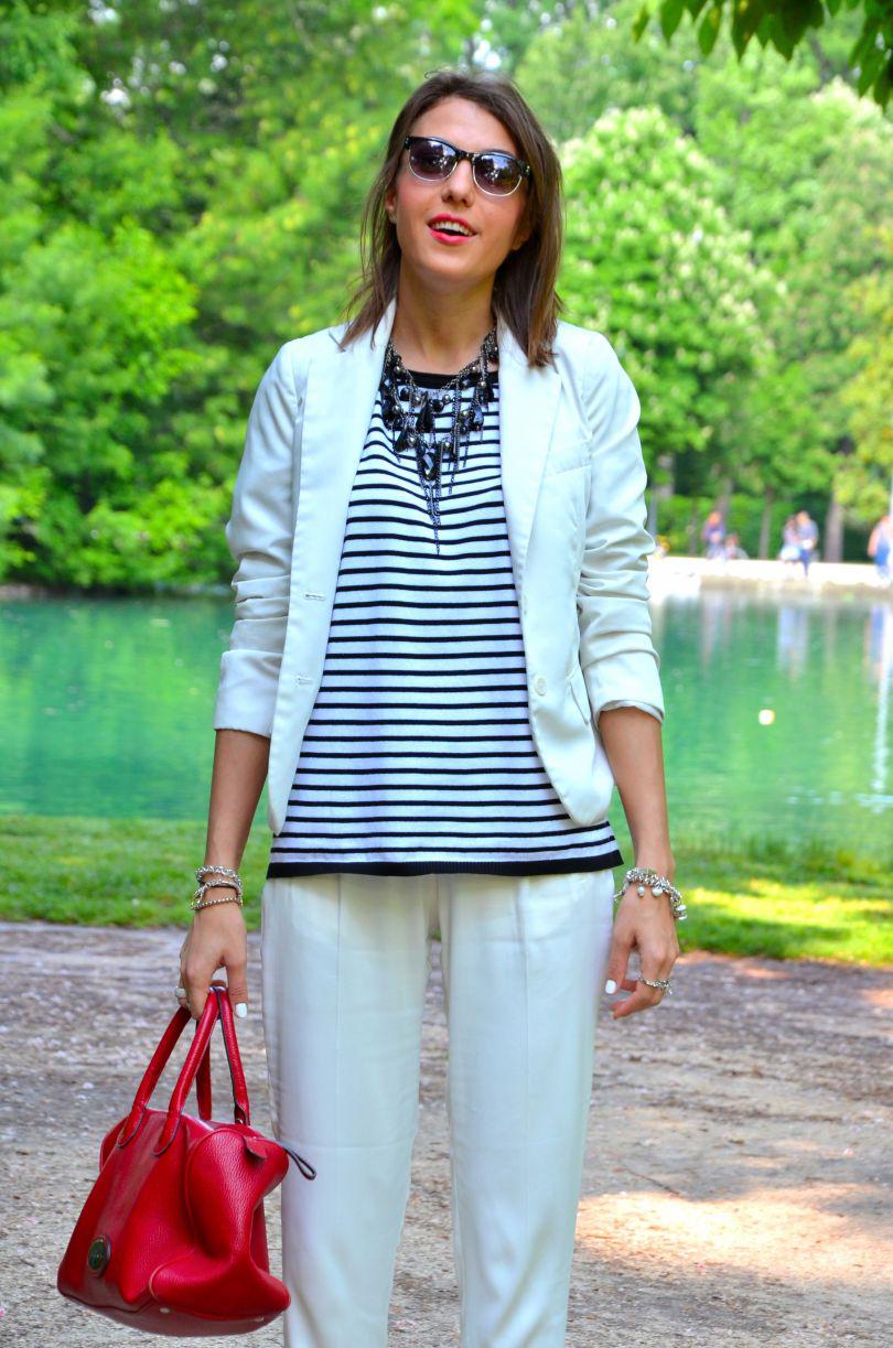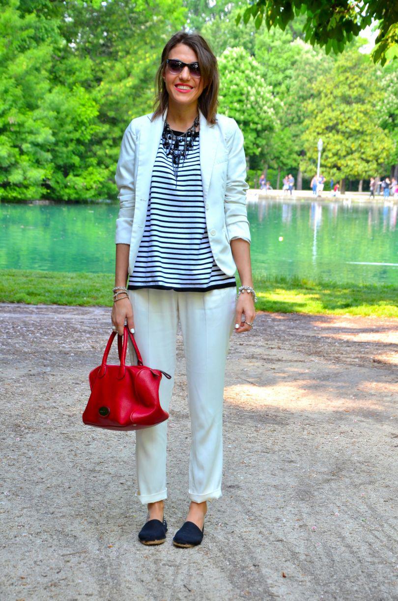 [IT] Ho usato nel post di oggi 3 elementi chiave di questa estate: il colore bianco, le righe e le espadrillas. I pantaloni sono di asos e li adoro. Hanno un tessuto molto leggero,perfetto per le giornate calde. Finalmente c'e' stato un bel sole oggi. Voglio godermelo in pieno,visto che questo weekend piovera' ancora. La maglia e' di ZARA . Se non avete acquistato ancora nessun articolo a righe, allora la prossima volta che andate a fare shopping prendete una cosa in questo print. Attenzione pero' che righe scegliete: orizzontali o verticali. Quelle orizzontali ingradiscono e ingrassano,quelle verticali allungano e dimagriscono molto. Il terzo elemento di quest'estate sono le espadrilles. Aaaaah,io sognavo quelle di Chanel ,pero' al momento mi accontento con quelle prese nel negozio dove lavoro, Subdued . A me piacciono moltissimo,a voi?