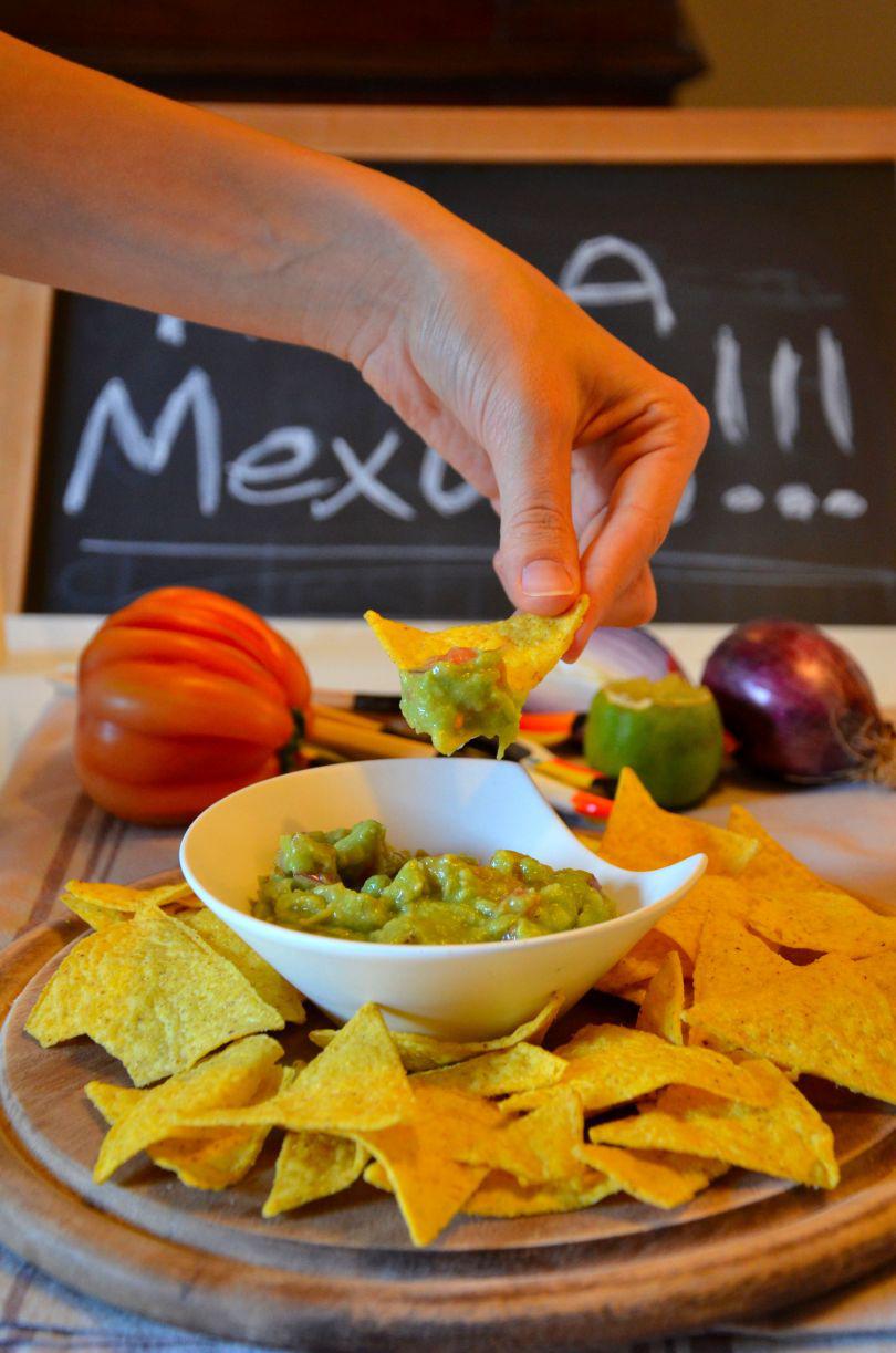 [RO] In lista noastra "next travels" este si Mexic. Sunt foarte curioasa sa cunosc aceasta tara: persoanele,frumusetile naturale,mancarurile traditionale. Chiar daca acum gasesti la orice colt restaurante mexicane,japoneze,chinezesti, mancarurile insa nu sunt ca acelea originale. De exemplu pizza pregatita in Moldova,nu va fi niciodata atat de gustoasa ca pizza facuta in Italia. Pana ajungem in Mexic,m-am gandit sa fac astazi aceasta reteta pregatita cu avocado. Alegeti un avocado copt bine,o rosie,o ceapa rosie si un lime. Tocati avocadul,taiati rosiile si ceapa. Sarati,piparati si stoarceti sucul de la o jumatate de lime. Serviti pasta de avocado cu nachos,chipsuri sau cu felii de paine bagheta facute in rola. Ole' :)!