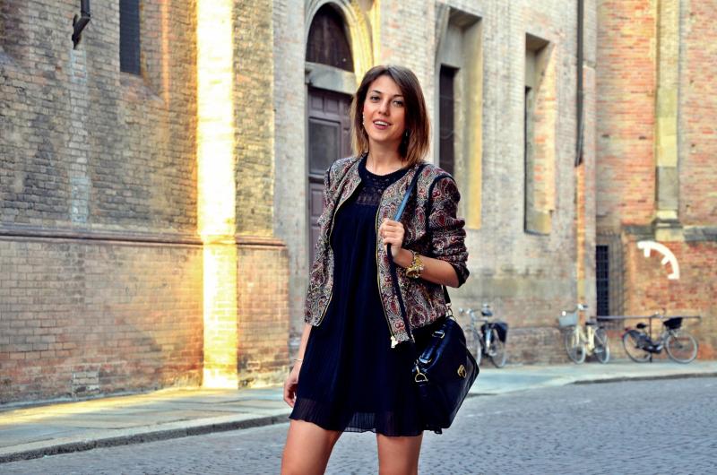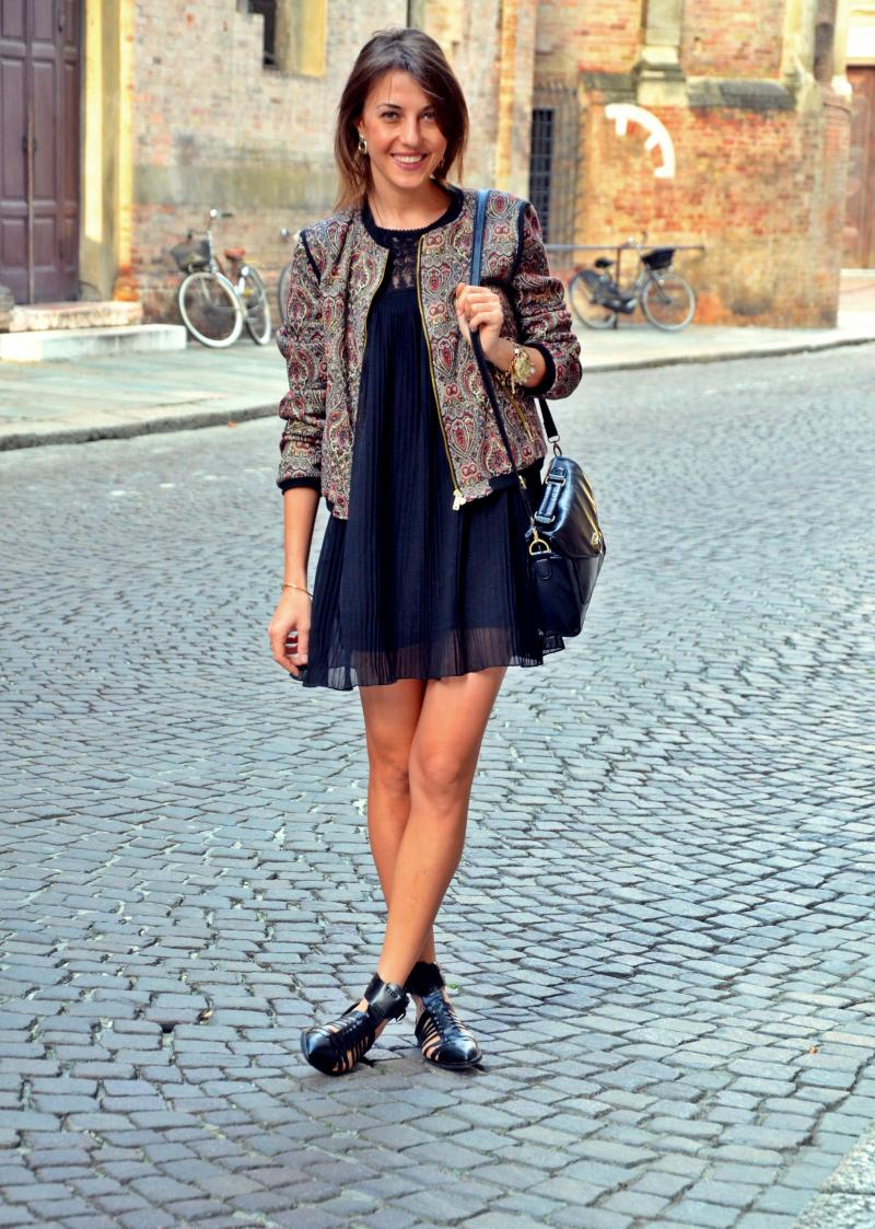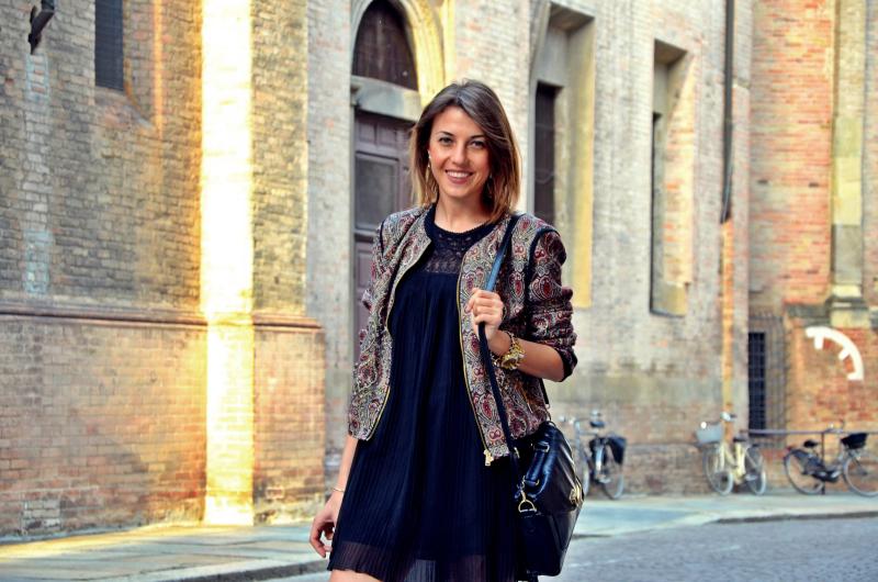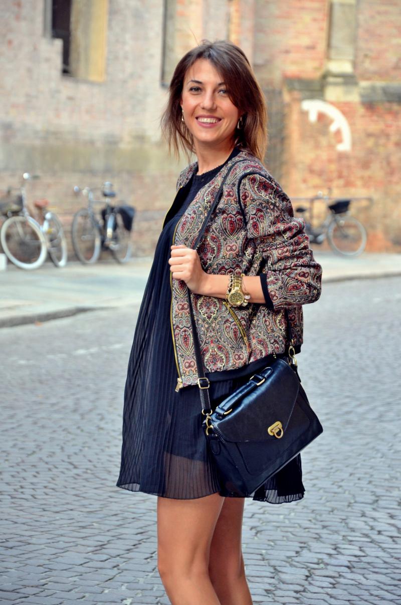 [IT] Hey,bambole come state? Visto che qui non c'e' ombra d'estate o almeno primavera,ho deciso di mettermi questa giacca di colori autunnali. So che magari sembra un po' troppo ricamato questo look,perche' il vestito ha delle lavorazioni e anche la giacca non e' semplice,pero' a me piace questo trend. Ho visto sui vari siti e blog queste combinazioni di tessuti diversi,di righe su quadrati,fiori su pizzo. Sembra che il trend di adesso non e' "less is more" ;).