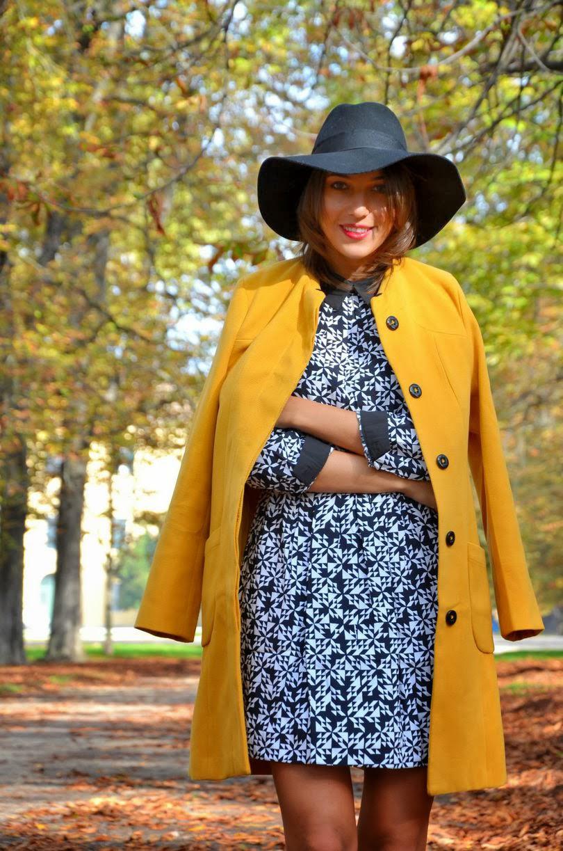 [RO] In ultimul timp imi plac mult tinutele black&white. Fie ca imbrac o fusta neagra si o camasa alba,fie o rochie sau o fusta cu imprimeuri in alb&negru. Da,este un trend clasic,insa nu este demodat,mai ales daca incerci sa il personalizezi. Eu am adaugat putina culoare tinutei cu ajutorul unui ruj si a paltonului galben primit in dar de la Pepa Loves .