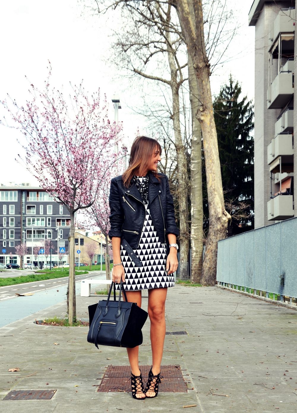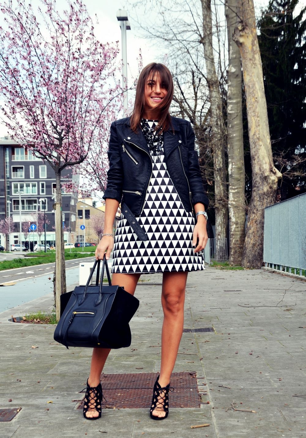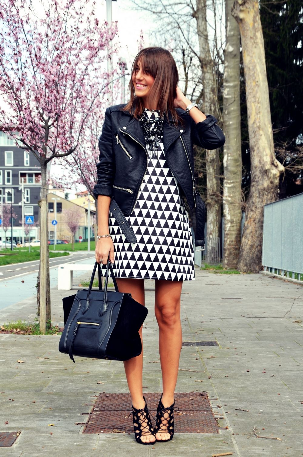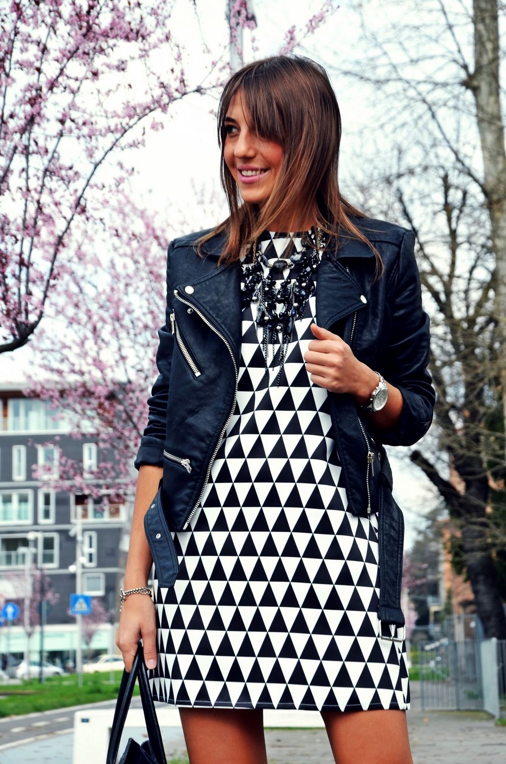 Va arat astazi o tinuta foarte primavaratica. Am ales sa combin aceasta rochie cu o jacheta din piele neagra si o pereche de sandale. Cand afara va fi mai cald,voi combina rochia cu o pereche de pantofi roz pentru a da putina culoare tinutei :). Poate fi purtata si cu o pereche de balerini sau adidasi. Cu siguranta veti vedea des aceasta rochie in tinutele mele ;).