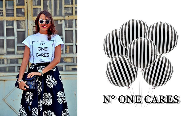 [RO] Sunt fana fustelor midi. Imi este plina garderoba, dar nu ma mai satur de ele :)). Chiar saptamana aceasta am ales 2 fuste noi si abia astept sa le primesc. Am vazut prin internet poze de la saptamana modei in care fusta midi este combinata cu tenisi si maiouri cu inscriptie. M-am inspirat exact din acele tinute pentru look-ul meu de astazi. Un astfel de maiou este usor de combinat si cu o pereche de blugi, pantaloni din piele sau pantaloni albi si un blazer negru. Cu o pereche de pantaloni scurti, o fusta mini sau midi... Inscriptiile le alegeti voi ;). Mie mi-a placut mult aceasta: ''N° one cares'', dar prin magazine gasiti sute de inscriptii faine ;).