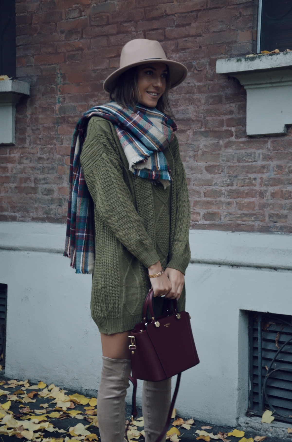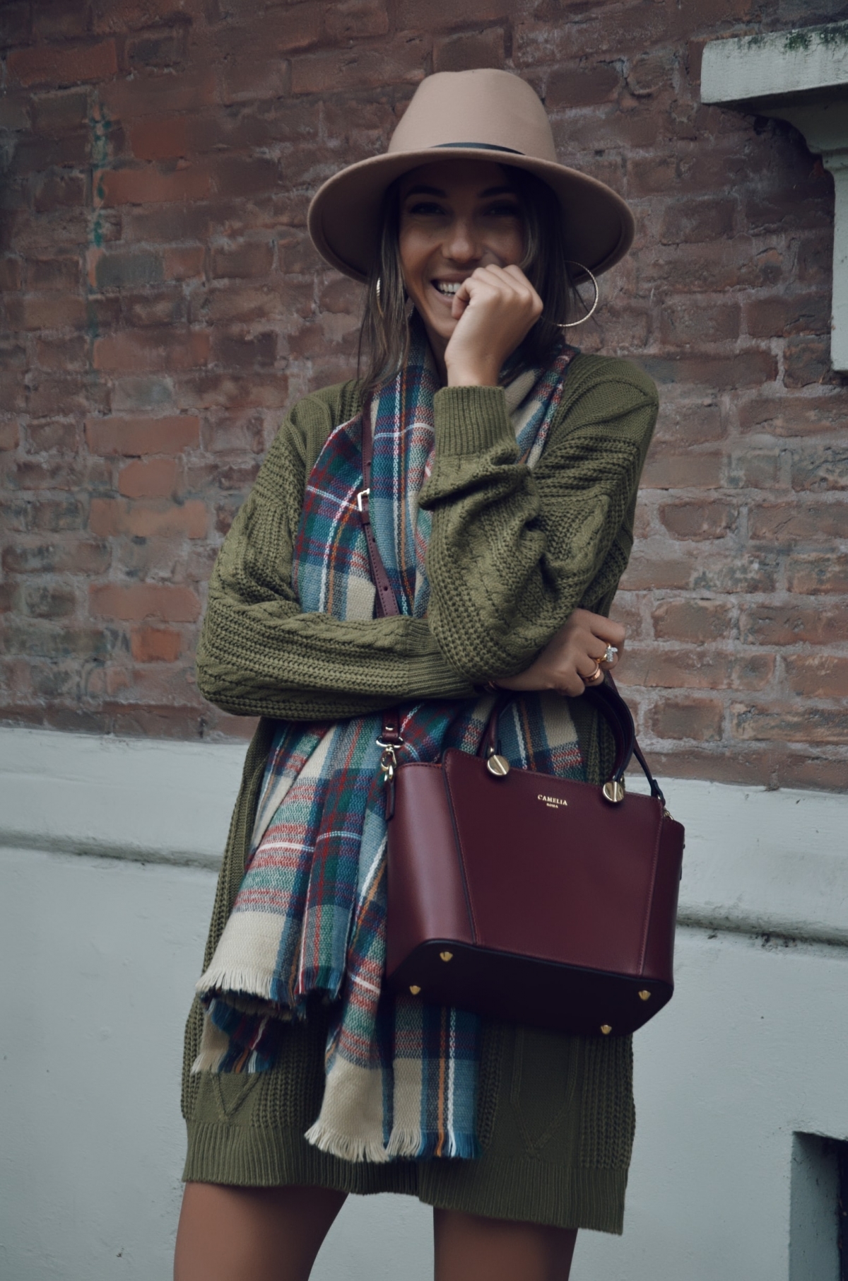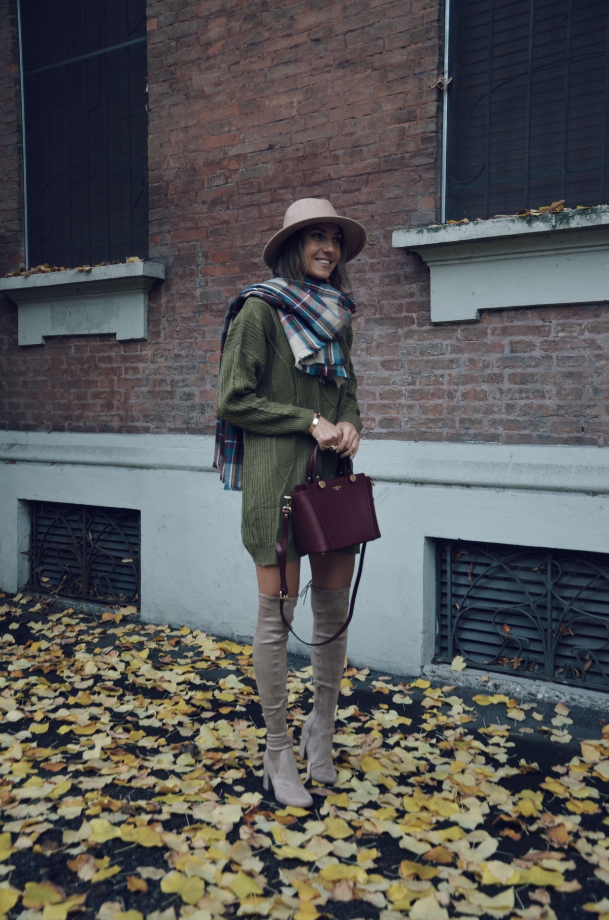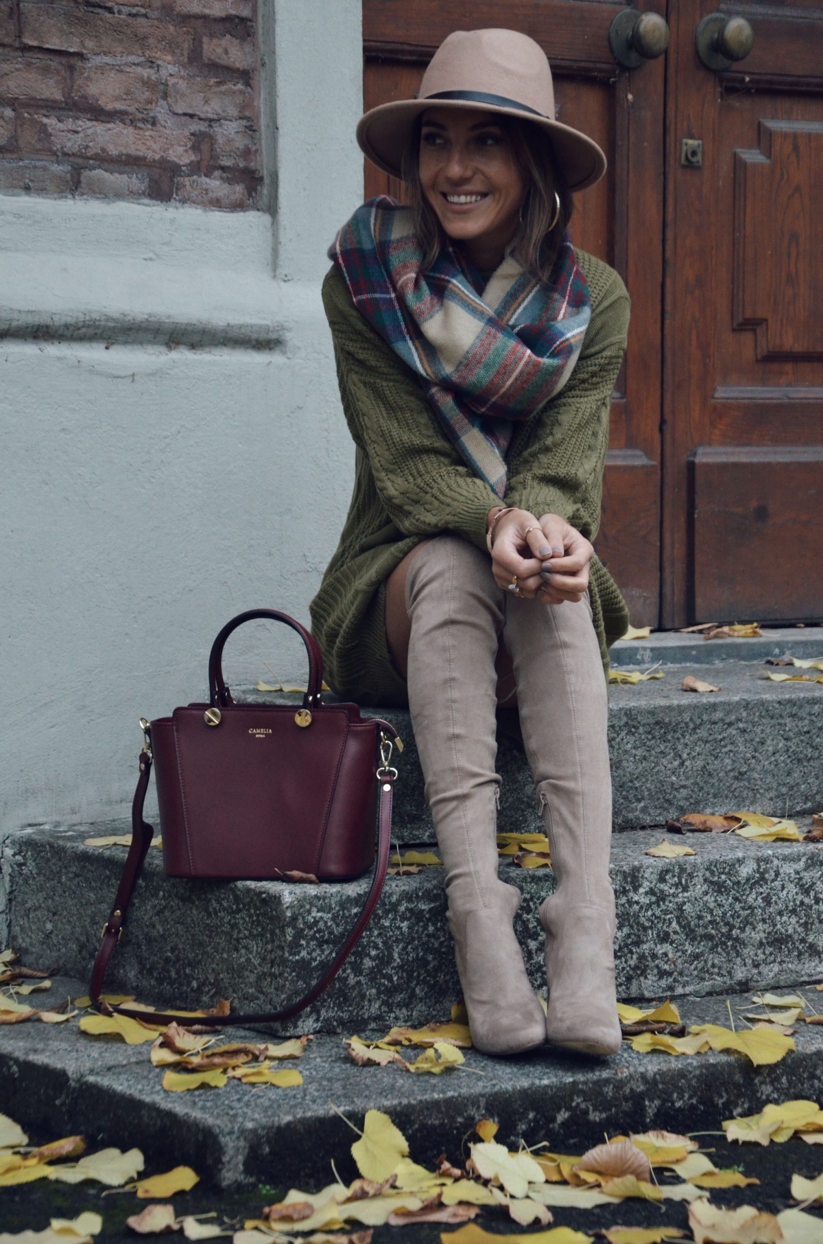 Non so voi, ma io adoro questi mega maglioni che si possono indossare come dei vestiti. Mi piace tantissimo anche questo colore verde oliva...quindi non potevo trovare di meglio: modello e colore preferito. Ho indossato questo vestito-maglione con un paio di stivali alti beige, sciarpa e fedora. Ho abbinato il colore verde oliva con la mia nuova borsa color vinaccia di CAMELIA ROMA. Penso che verde stia molto bene con il bordeaux. Il vestito invece l'ho preso QUI. Non e' molto pesante, pero' per il prezzo che ha si puo' fare ;).