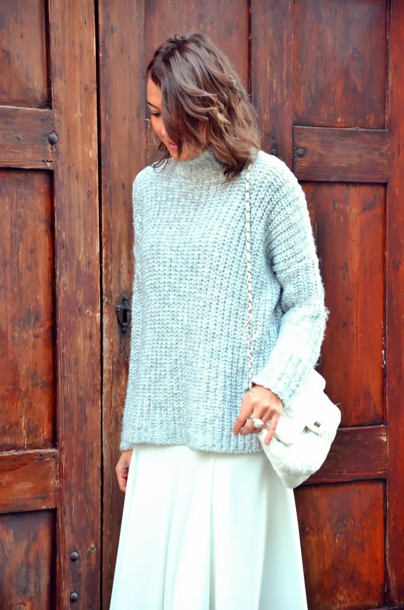Wearing: Zara skirt and maxi pull, uno de 50 ring , Michael Kors watch , Bulgari ring, Primark shoes.