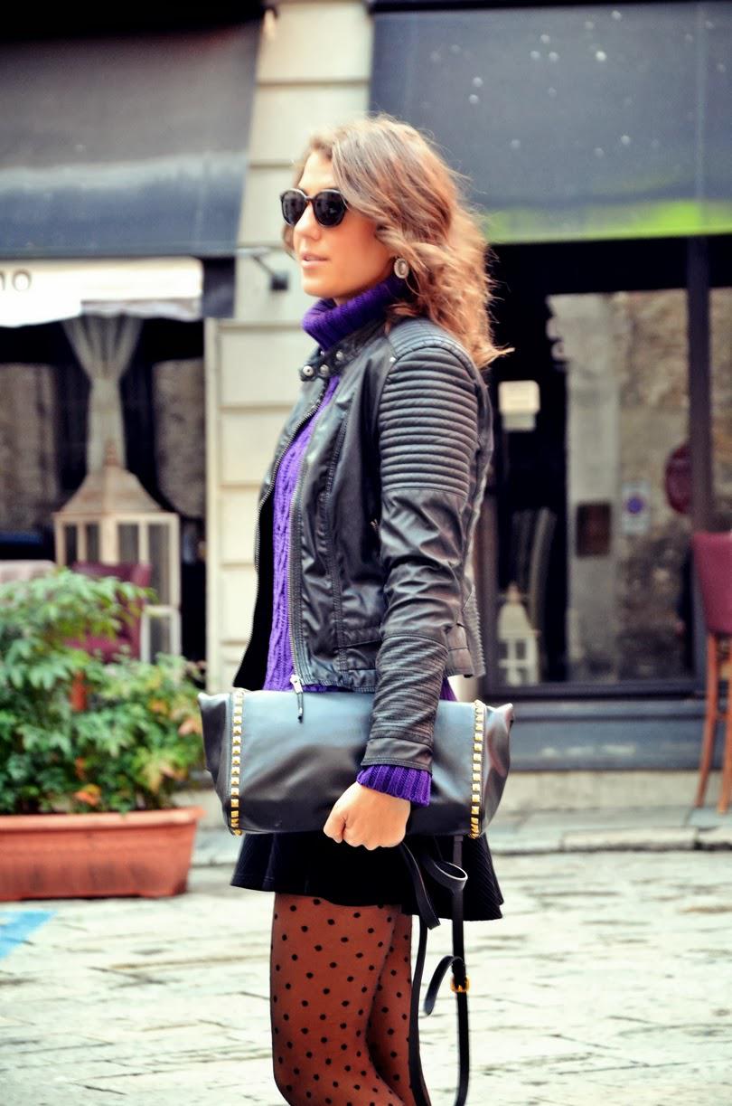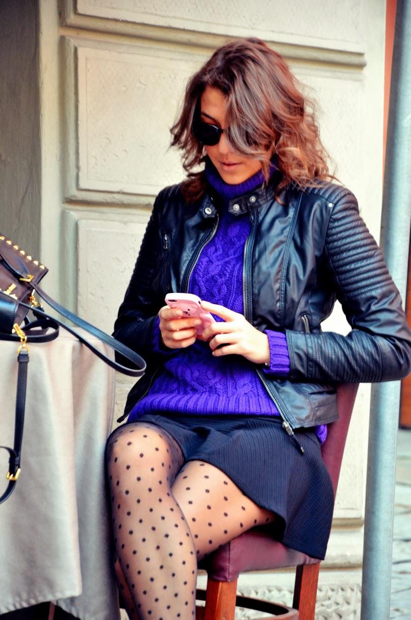 [IT] Io sono molto freddolosa,quindi di solito non bado molto alla moda se fuori piove,nevica o c'e' quel freddo tagliente che ti arriva alle ossa. Brrrrr... Mi metto i UGG,la cuffia,la sciarpa e un bel giaccone..poco fashion,ma mooooltooo caloroso :). Oggi pero' finalmente,dopo settimane di brutto tempo e' uscito il sole. Abbiamo avuto una giornata bellissima. Avevo da tanto tempo in armadio questi collant a pois e oggi li ho indossati. Li ho abbinati ad un maglione pesante e una gonna. Un outfit perfetto per fare un giro in citta'.