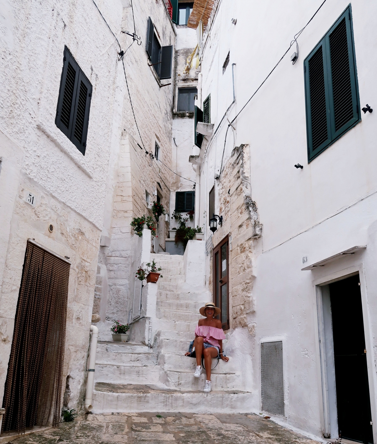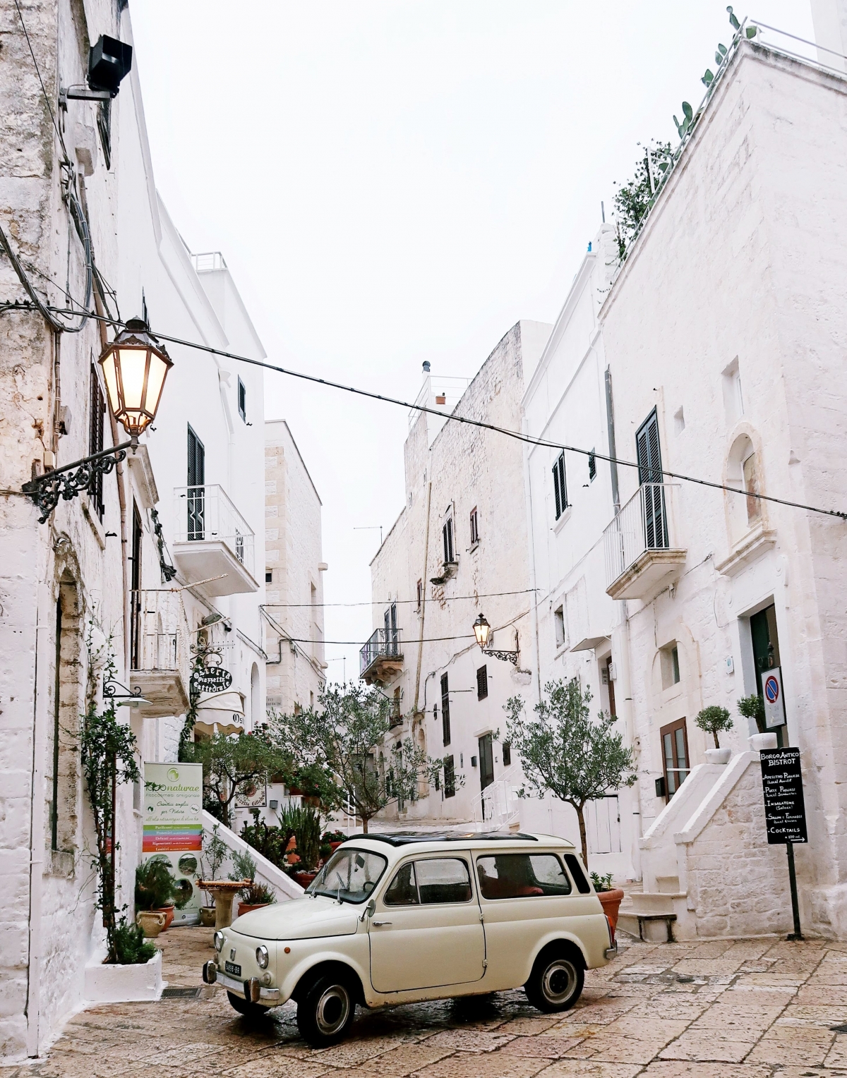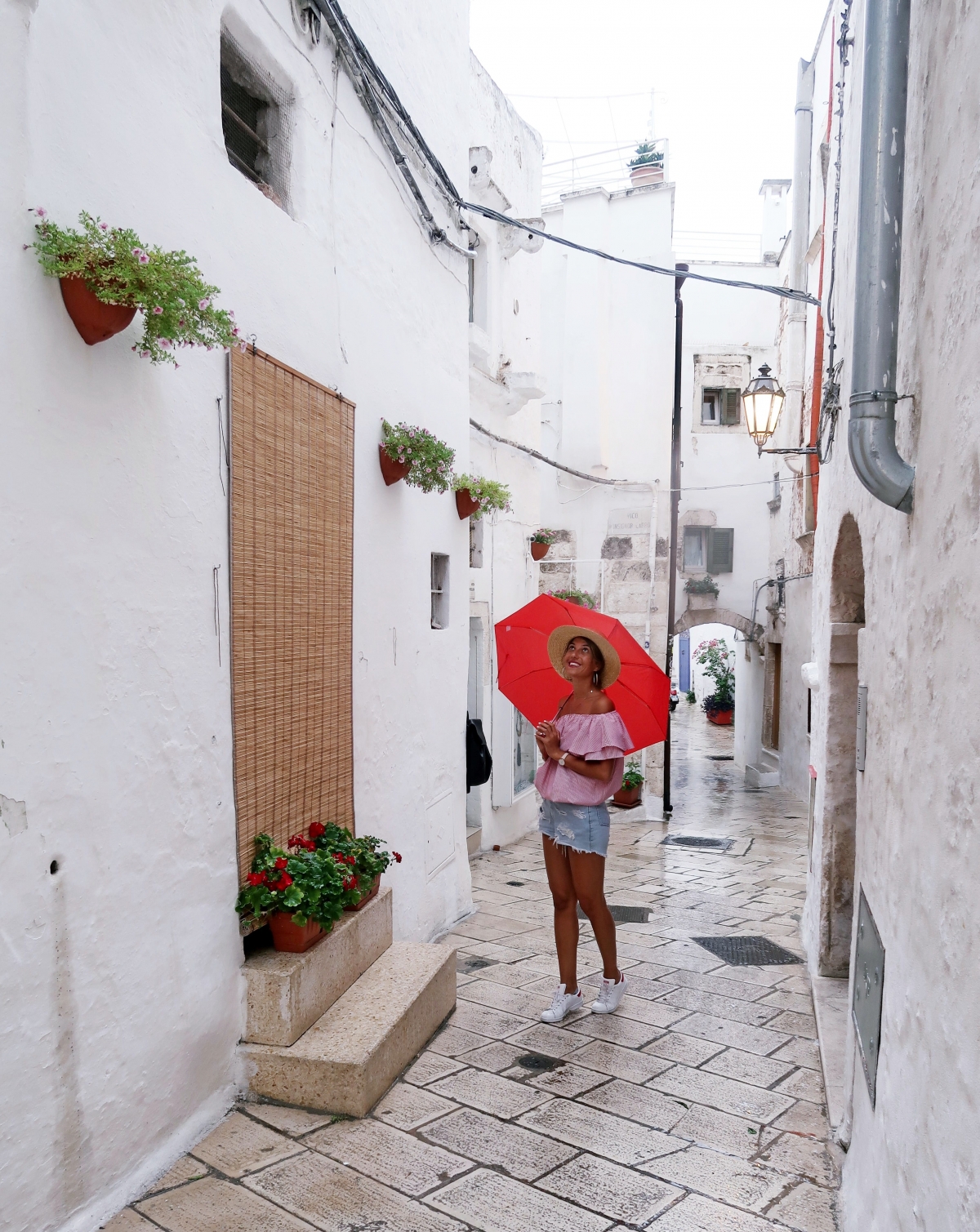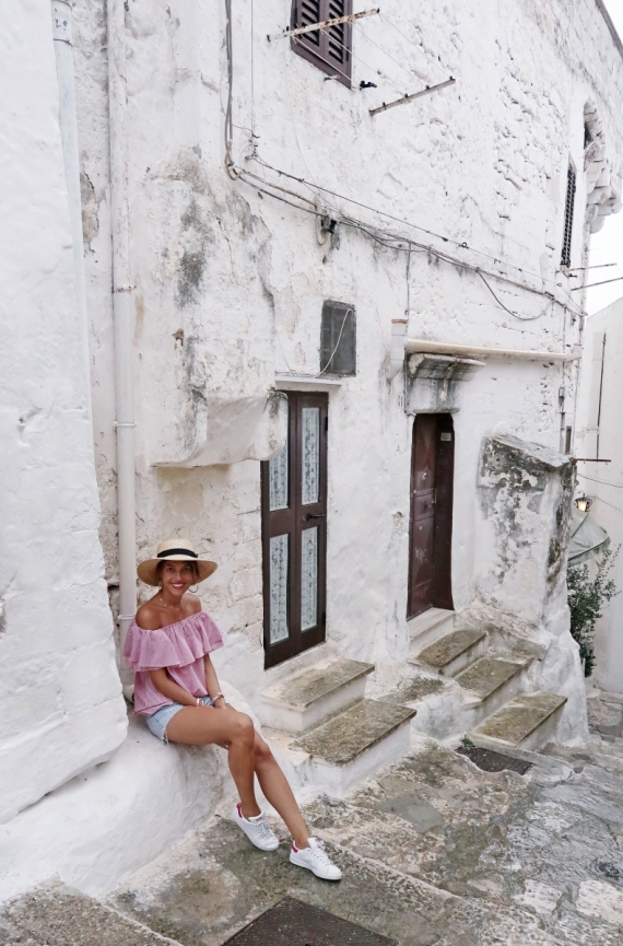 Am ajuns la penultima postare din Puglia. Stiu ca vreti deja postari si poze de toamna, cu tinute pentru vremea rece, dar nu pot sa nu va arat toate impresiile si fotografiile din Puglia. A venit randul oraselului care mi-a furat inima: Ostuni. Mi-a atins inima. Din toate excursiile facute pe acest taram, localitatea Ostuni este preferata mea. Chiar daca am vizitat-o in timp ce ploua, va garantez ca este nemaipomenit de frumoasa! Totul e alb,alb in jur..probabil mi-a placut atat demult deoarece imi aduce aminte de Santorini.