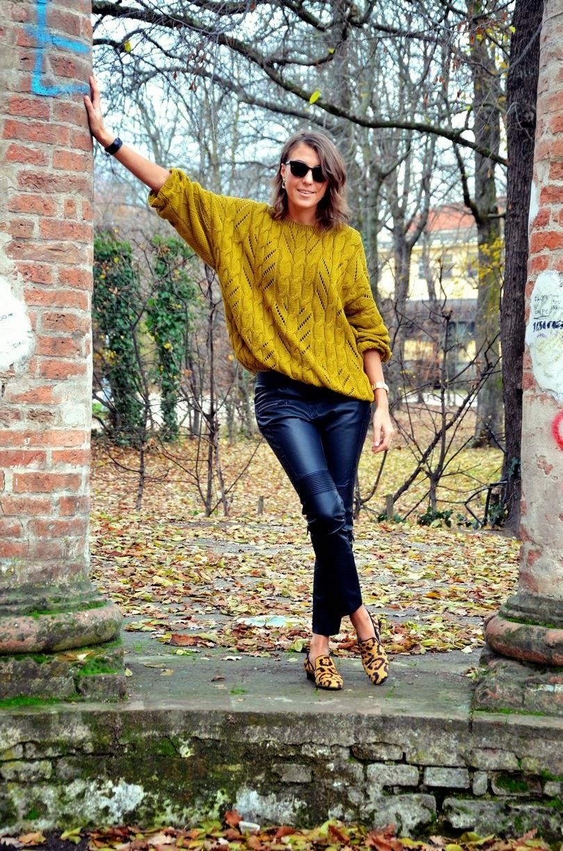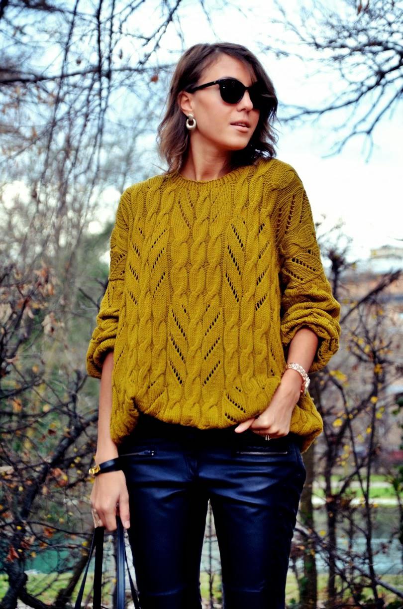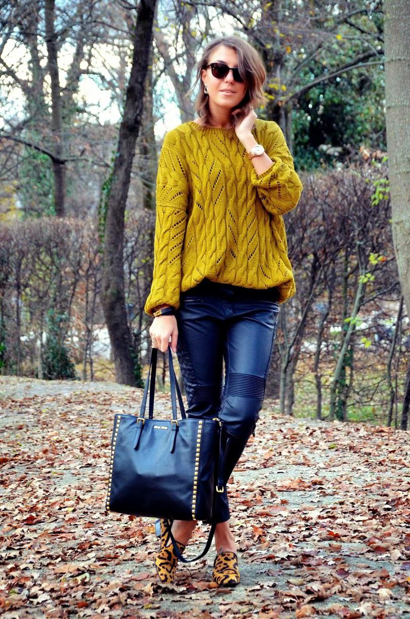 Wearing: Sebastian shoes , Zara leather pants, Vintage pullover, Vogue sunglasses , Guess watch , Miu Miu bag , Hermes bracelet