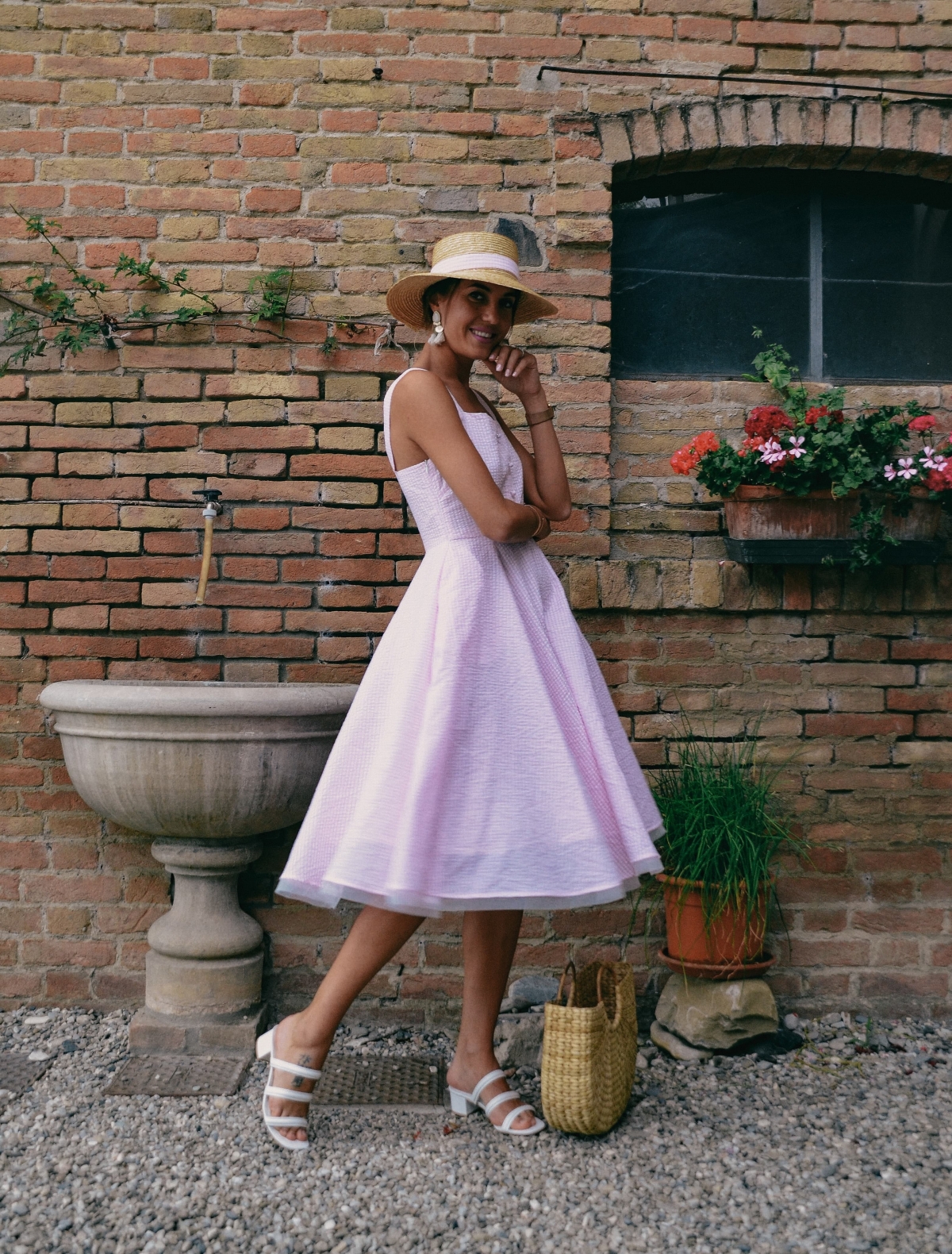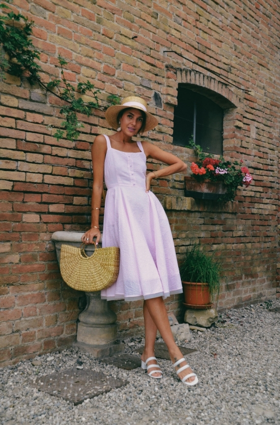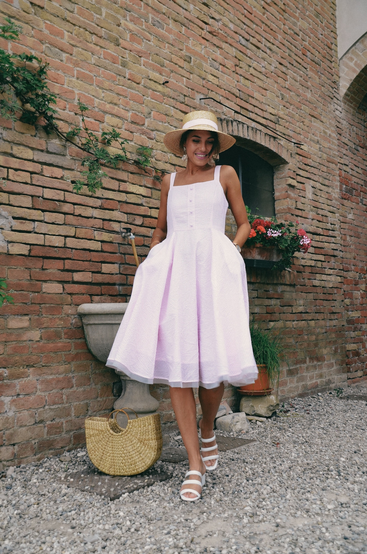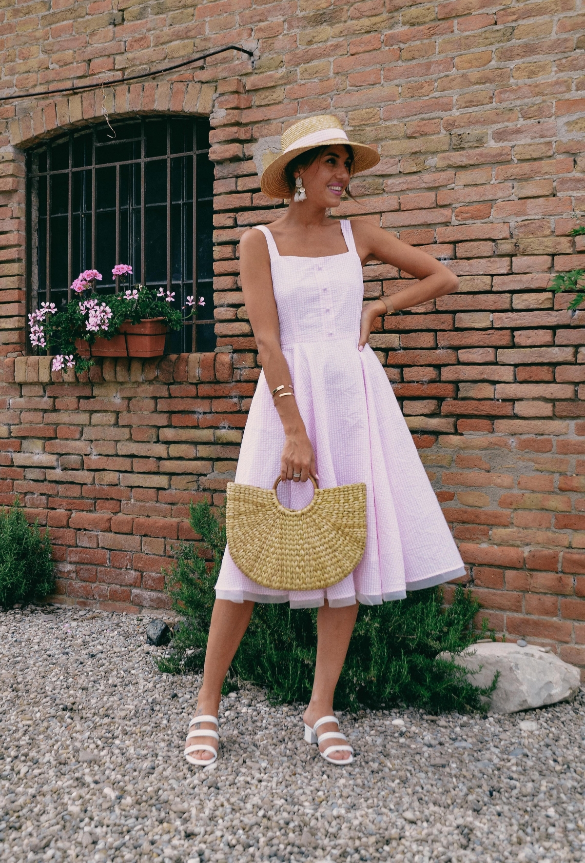 Ciao ragazze! Ho fatto ieri un sondaggio per chiedervi quale scarpa di SHOES OF PREY preferite: nera o bianca? Avevano vinto i sandali neri con tacco, pero' vorrei farvi vedere quanto sono belli anche questi bianchi. Come sapete gia', adoro il brand SHOES OF PREY.  Il fatto di poter creare le tue scarpe a tuo piacimento, di incidere qualcosa sopra e soprattutto avere la possibilita' di aggiungere la misura extra per i piedi problematici, rende quest'azienda incredibile. Ho tantissime paia di scarpe di SHOES OF PREY e devo dire che sono molto, molto contenta. Purtroppo per questi sandali, avrei dovuto scegliere una misura in piu'. Essendo cosi' apertI, questo genere di scarpa richiede una misura in piu'. Mi era gia' capitato con un altro negozio, avevo preso delle scarpe simili, ma mi erano corte. Qui ho scelto mezza misura, ma alla fine dovevo abbondare di piu'. Ma ripeto, solo in questo genere di scarpa ;). A me le scarpe bianche piacciono tanto, quindi sono sicura che le indossero' per tutta l'estate. Questa volta per esempio, le ho abbinate ad un vestito midi di CHICWISH, che trovate QUI. Ha due fiocchi da attacare al vestito, solo che io ho deciso di legarli al cappellino. Un abbraccione!