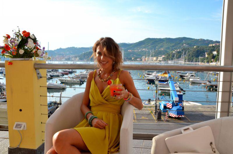 [RO] Am petrecut doua zile exceptionale. Luni si marti ne-am rasfatat la soare si la mare. Am fost la Marinella si Marina di Massa. Luni seara am baut ceva inainte de cina si am cinat la Lerici. Va sfatuiesc terasa si restaurantul "Golful Poetilor". Se mananca foarte bine si vazand ca este pozitionat langa portul din Lerici ,ofera un spectacol incredibil. Cu un astfel de peisaj,nu am ezitat sa fac cateva fotografii. Sandalele care le vedeti le cumparasem 2 ani in urma din Ibiza si este prima oara cand le incalt. Rochia insa este de la Elisabetta Franchi.